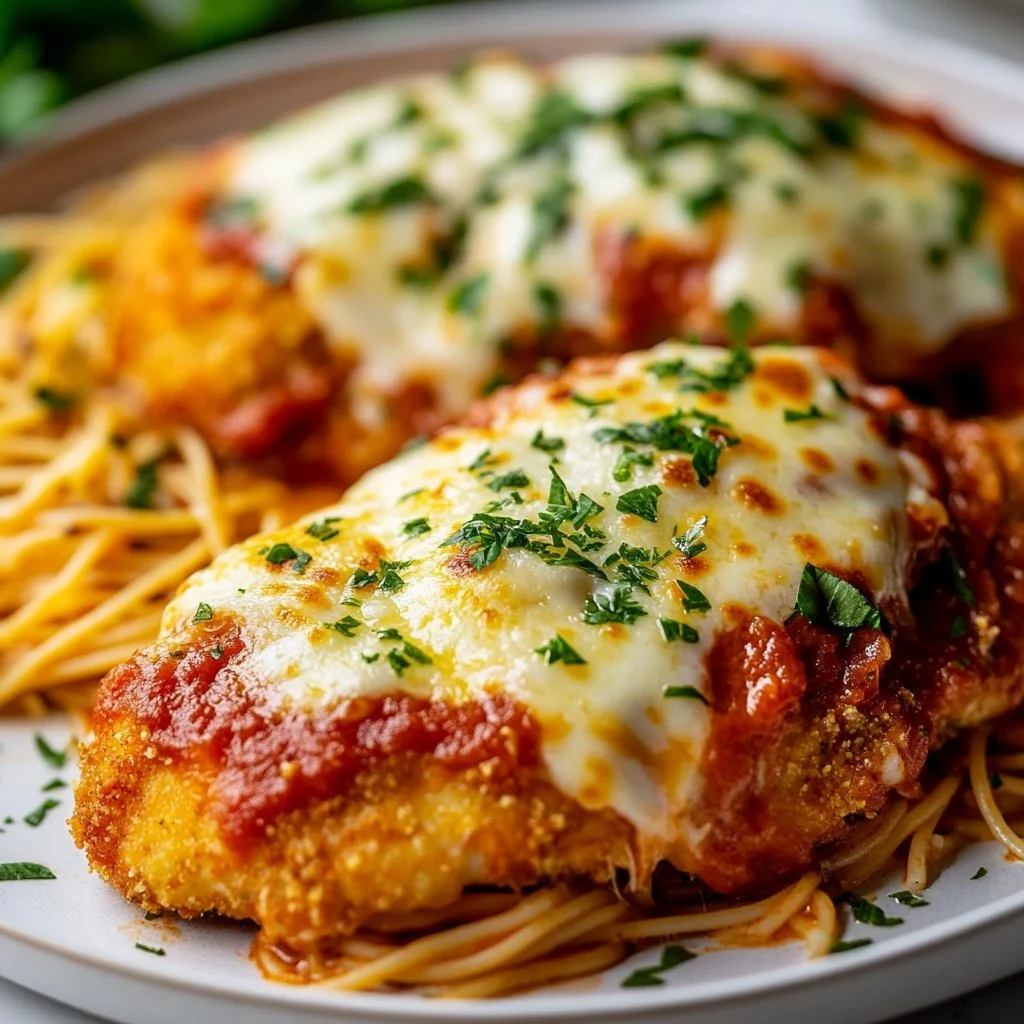 A simple and delicious Baked Chicken Parmesan featuring crispy breadcrumbs, gooey mozzarella, and flavorful marinara sauce.
