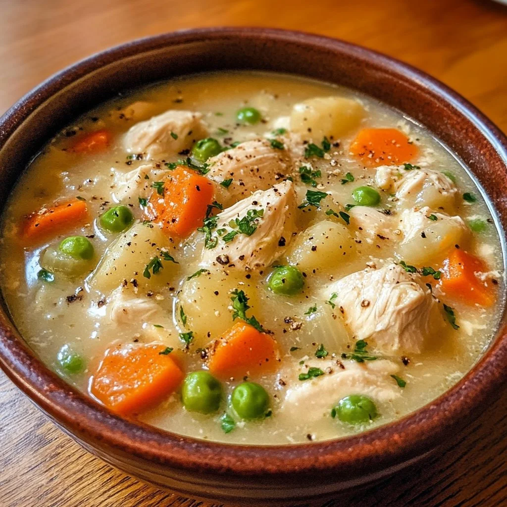 A comforting chicken pot pie soup that brings classic flavors in an easy-to-make recipe, perfect for chilly nights.