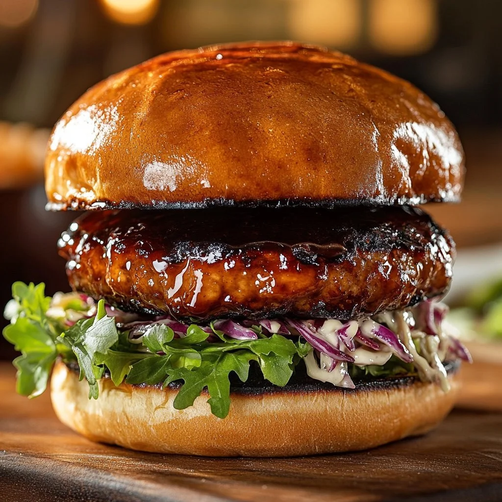 Don’t forget to pile on the slaw! Its crunchy texture adds an incredible contrast to the softness of the bun and patty. You could sprinkle some sesame seeds on top for an extra touch that screams both flavor and style.