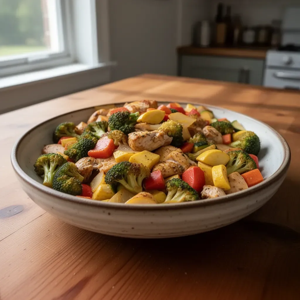 A simple and flavorful Chicken and Veggie Sheet Pan meal featuring juicy chicken breasts and a colorful medley of vegetables, perfect for quick weeknight dinners.