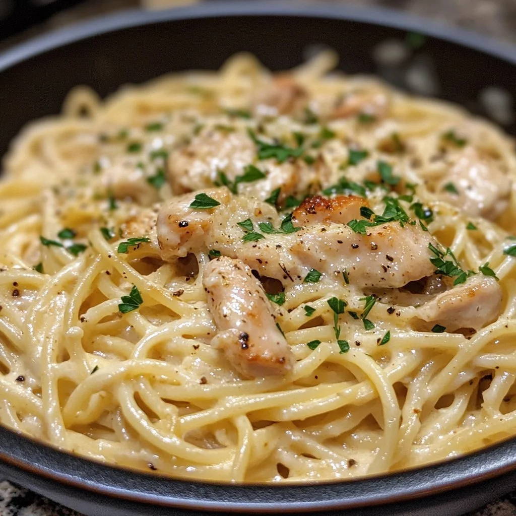This dish showcases what you can achieve with minimal cooking. The combination of pasta and chicken is classic, while the creamy sauce elevates it to gourmet status. It’s an accessible dish that turns leftovers into a star, making it a fantastic option for busy families.
