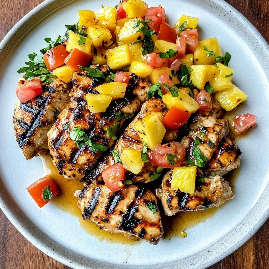 A delightful chicken dish marinated in a tropical blend of mango, pineapple, and savory ingredients, perfect for summer gatherings.