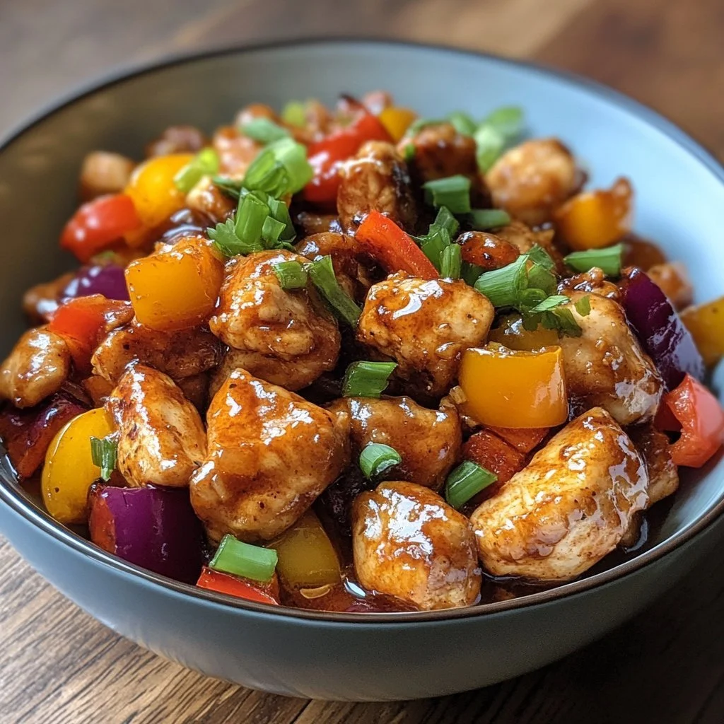 A flavorful and effortless dish featuring chicken marinated in a sweet and savory honey garlic sauce, stir-fried with vibrant bell peppers.