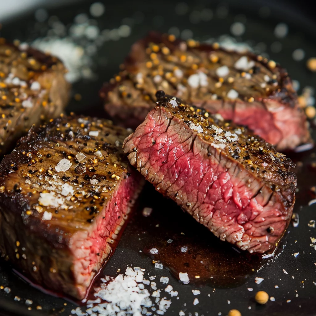 - Slice and serve the steak with additional salt and pepper to taste, if desired.