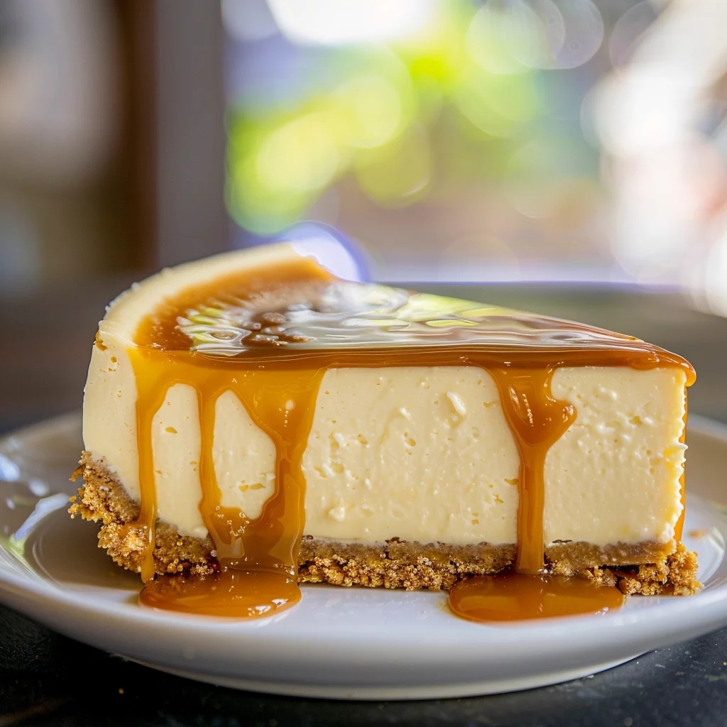 - Drizzle caramel sauce over the top of the cheesecake before serving.
