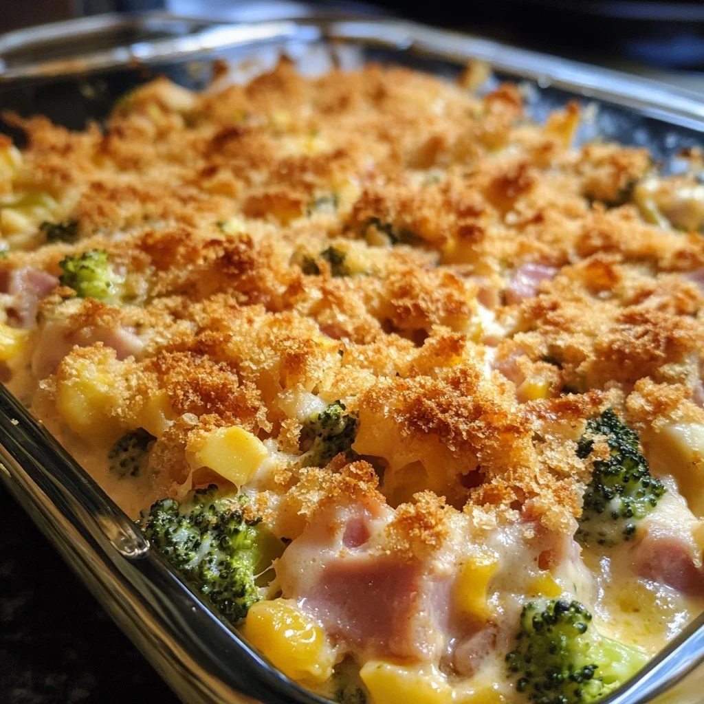 A comforting ham broccoli casserole that combines tender broccoli, savory ham, and creamy sauce for a delicious meal.